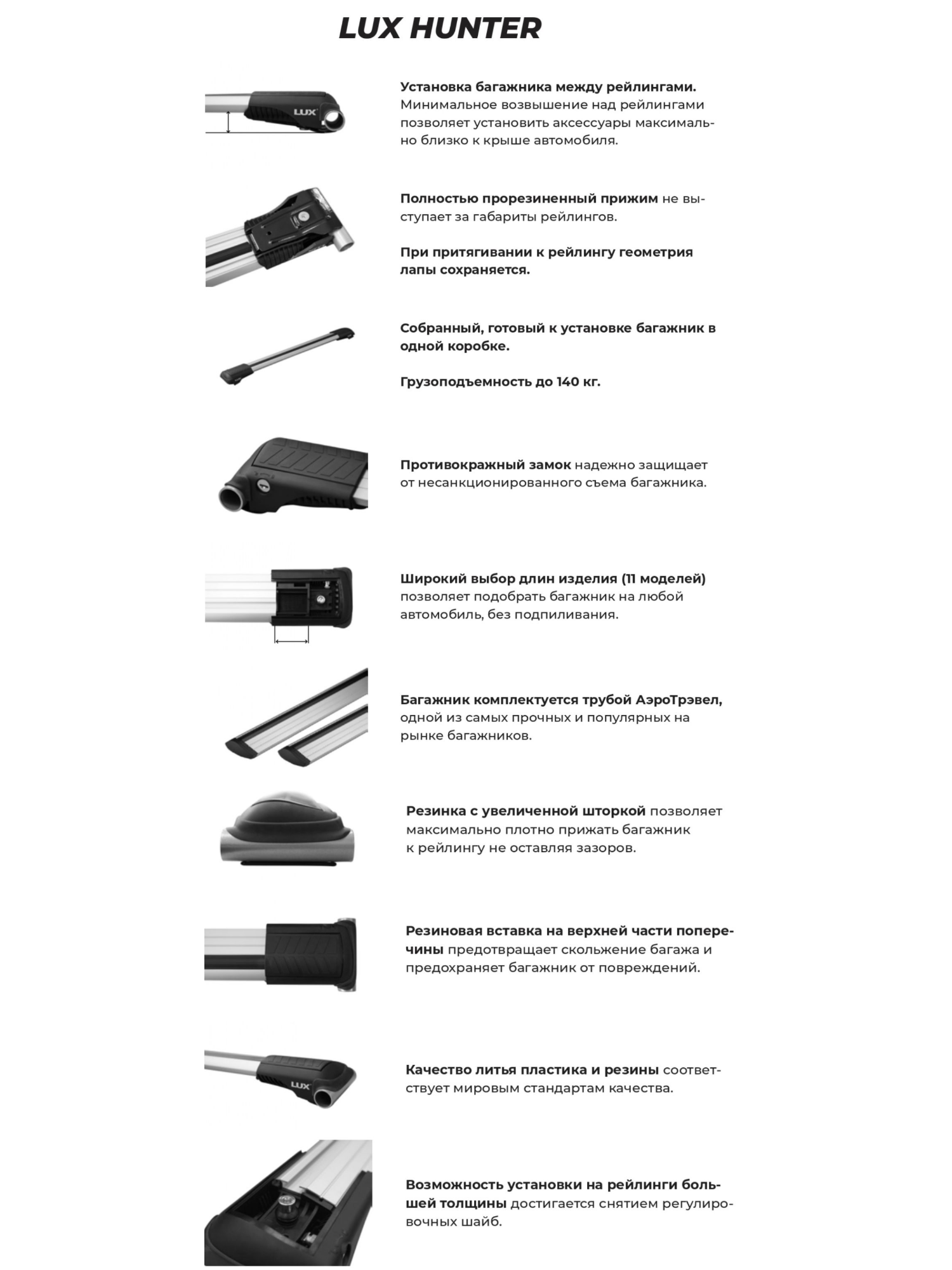Багажник на крышу LUX хантер, черные крыловидные дуги L46-B, на БМВ Х5 Е70 с рейлингами 2006-2013, арт:LH072B