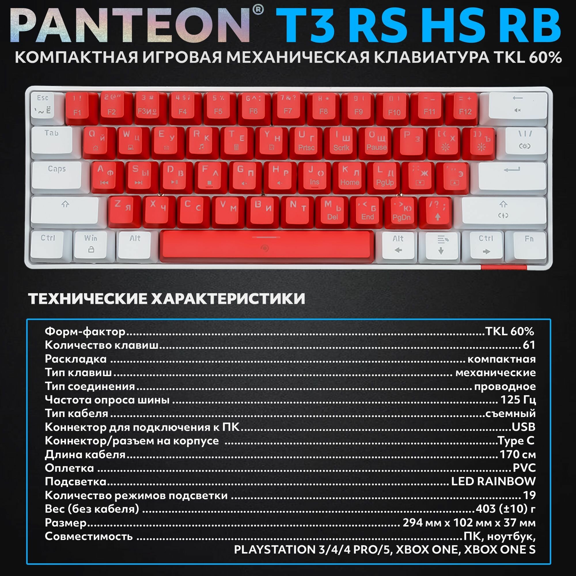 PANTEON T3 RS HS RB Red-White (43) Механическая клавиатура (TKL 60%, подсветка LED RAINBOW, Jixian Red, 61 кл, HotSwap, USB), цвет: красный-белый (43)