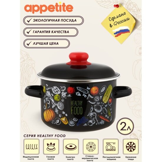 Кастрюля эмалированная с крышкой Healthy food 2,0л ТМ Appetite