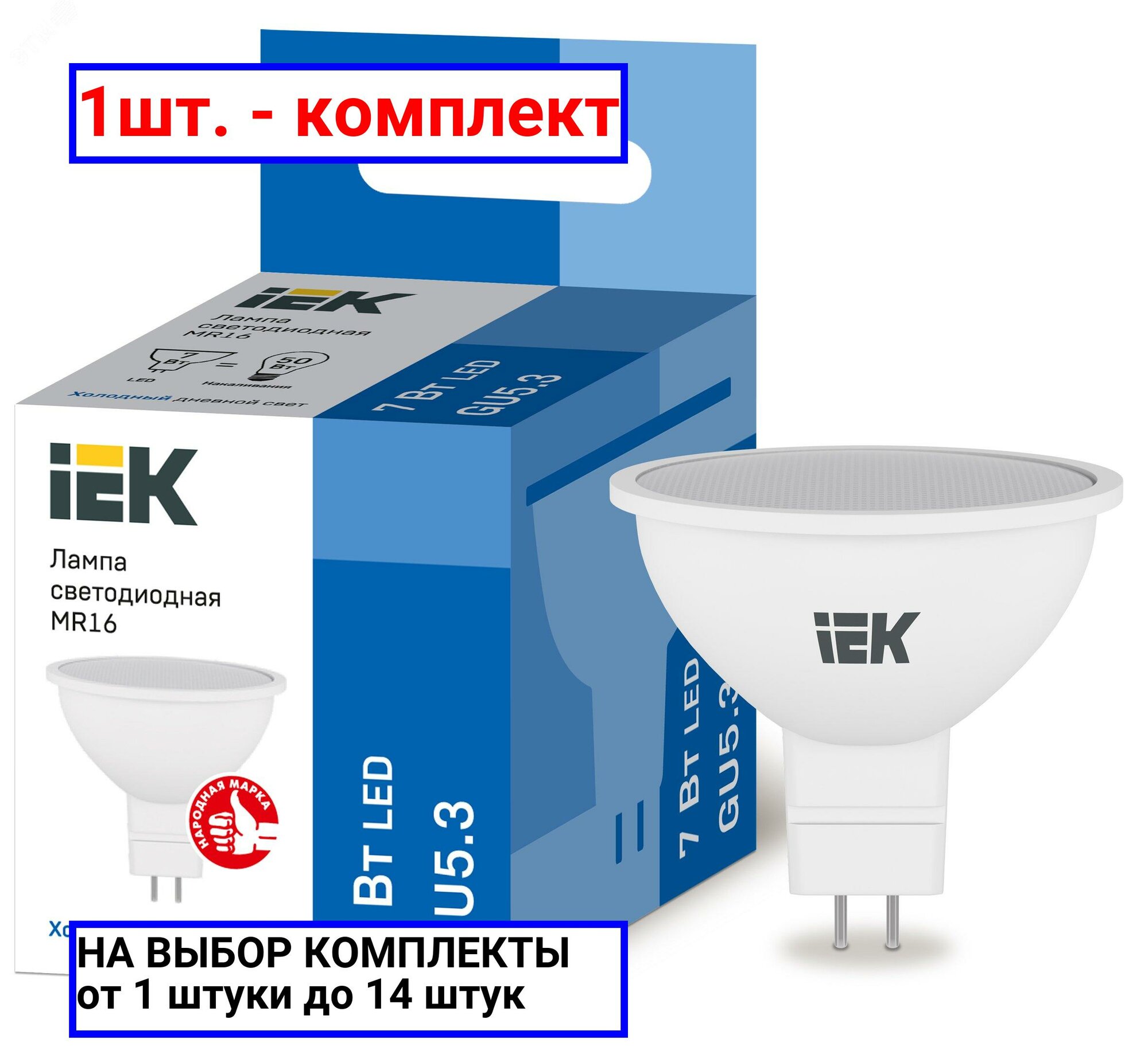 (14 шт.) Светодиодная лампочка IEK MR16 7Вт 230В 6500К GU5.3