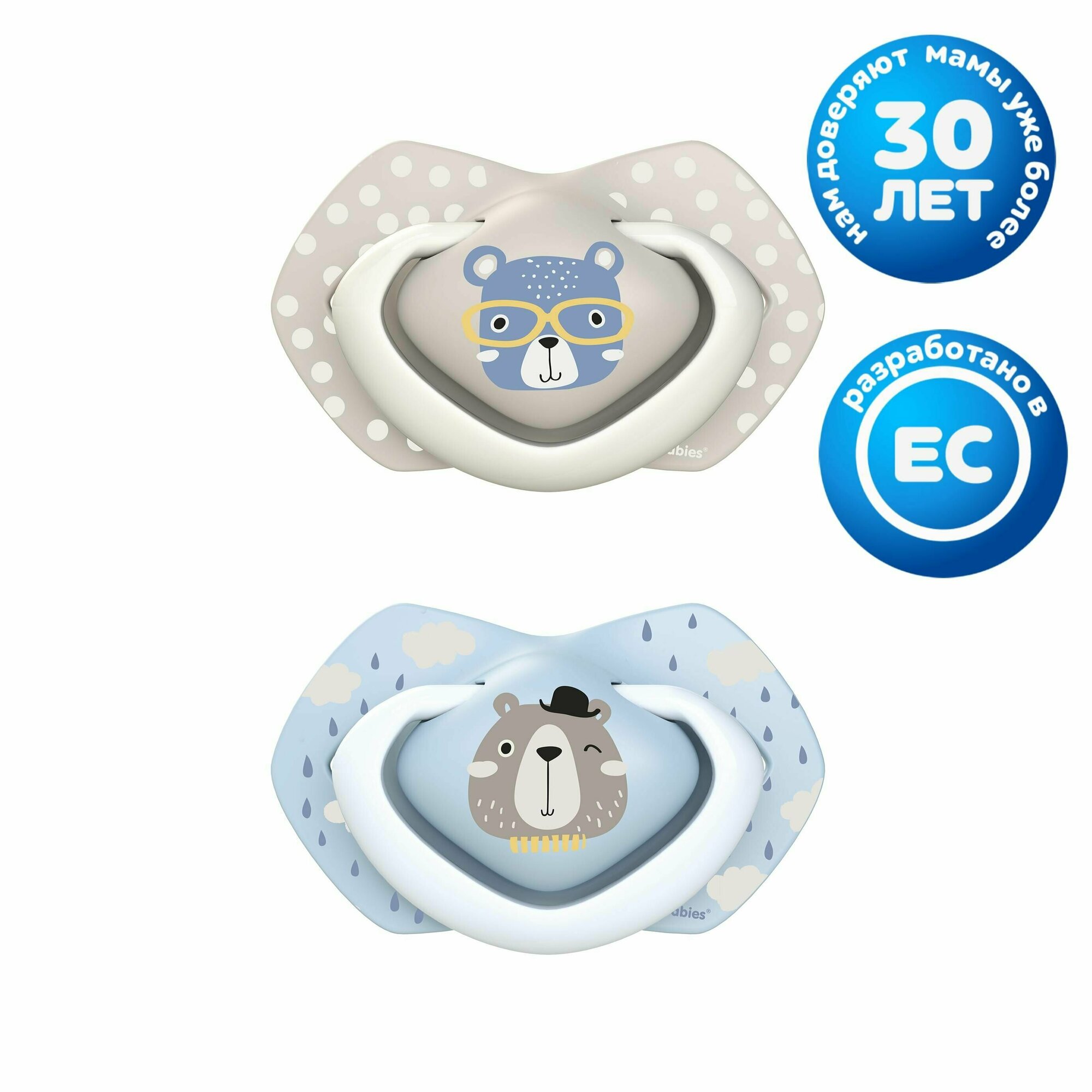 Пустышка силиконовая симметричная Canpol Babies Bonjour Paris 18 м+ 2 шт, голубой/бежевый, 2 шт.