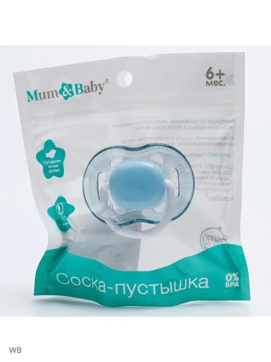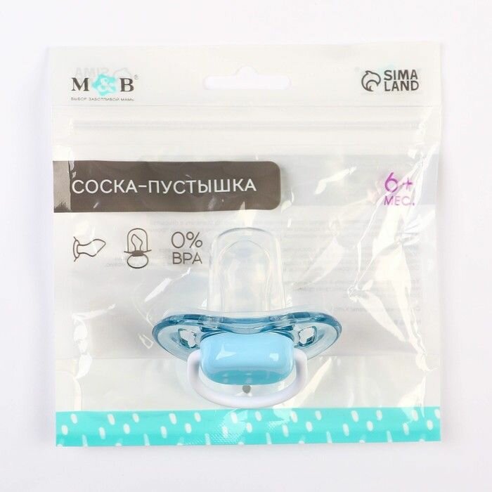 Mum&Baby Соска-пустышка ортодонтическая, силикон, от 6 мес., с колпачком, цвет голубой