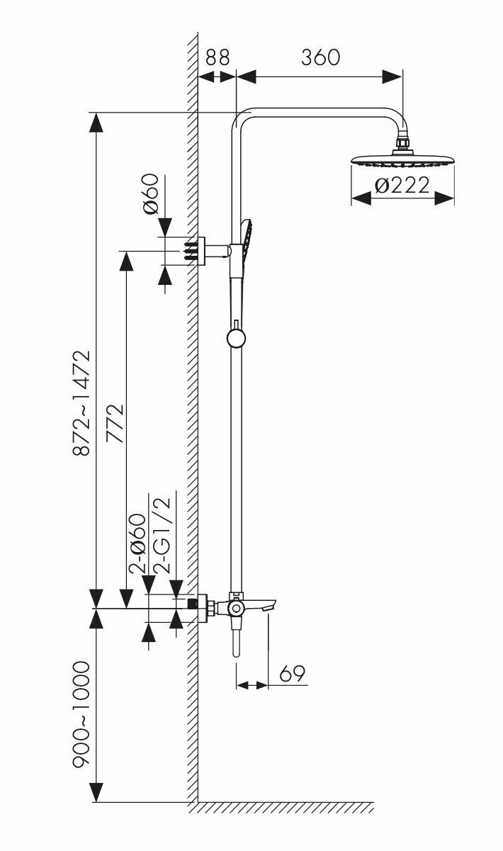 | Количество режимов верхнего душа | 1 |