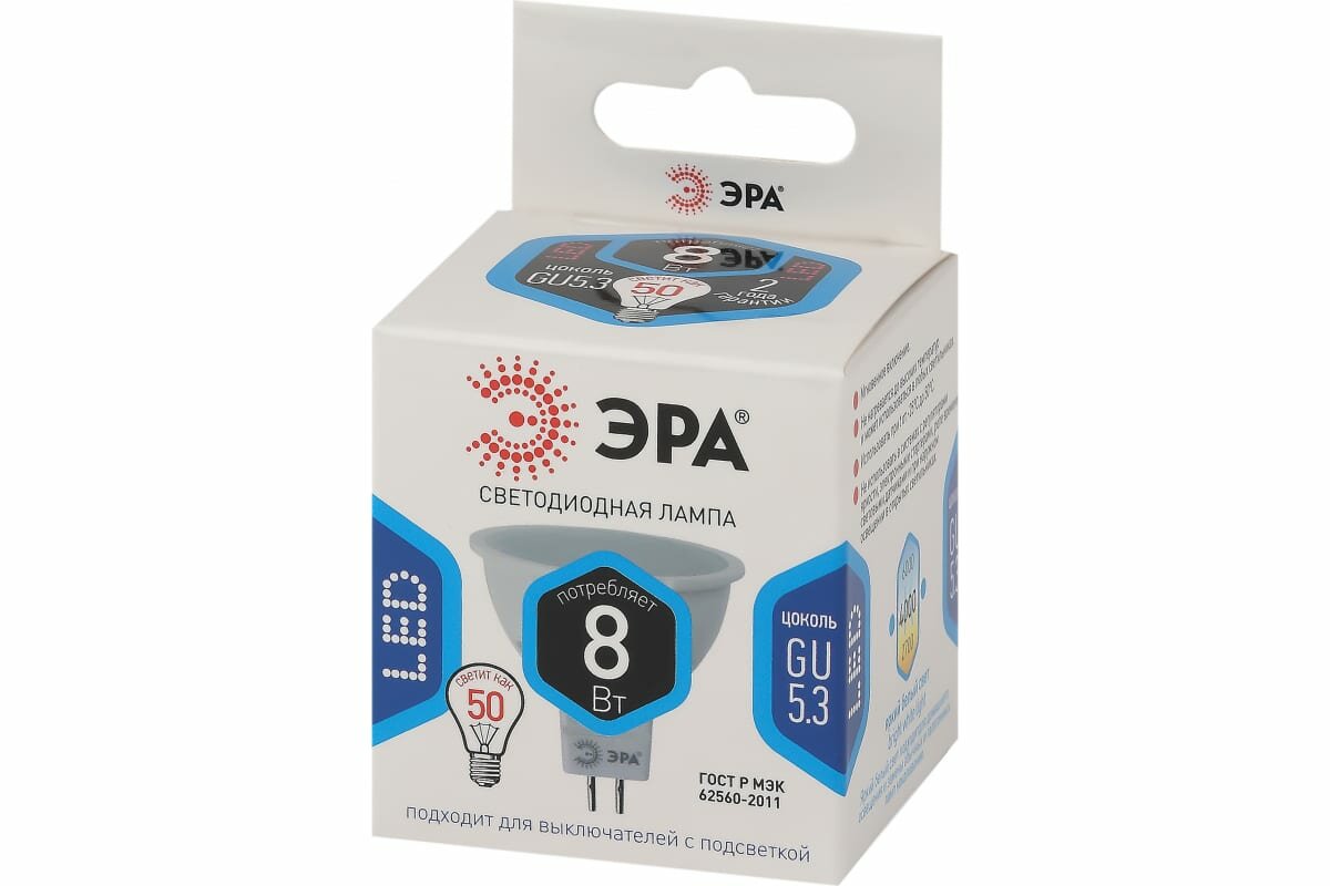Светодиодные лампочки ЭРА STD LED MR16 8W 12V 840 GU5.3 8Вт софит Б0049094