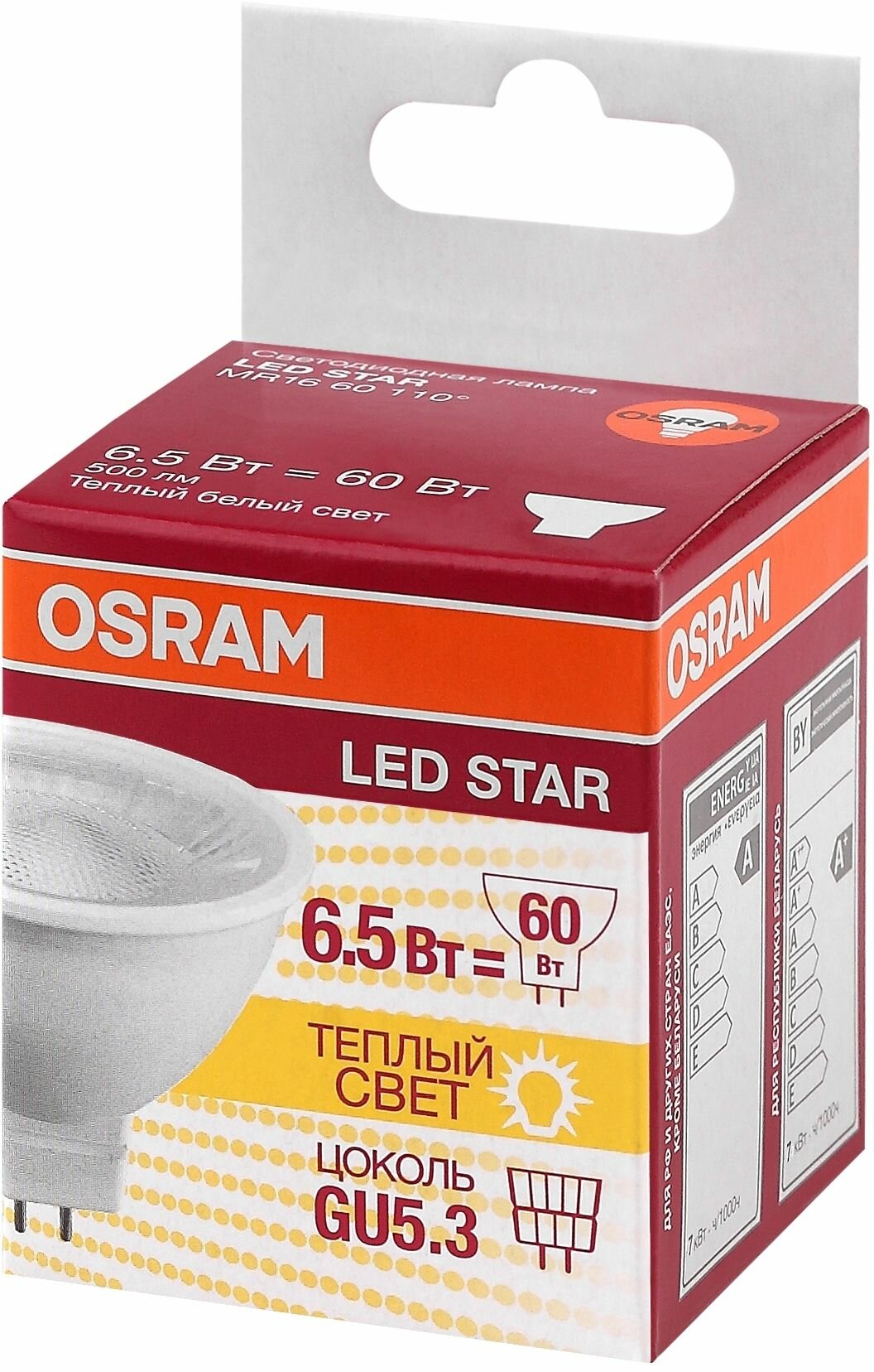 Светодиодная лампа OSRAM LED STAR MR16 6.5Вт GU5.3 500 Лм 3000 К Теплый белый свет 4058075481220