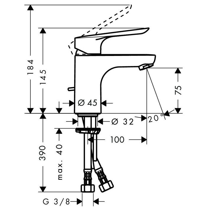Hansgrohe Novus 71020000 Смеситель для раковины с донным клапаном