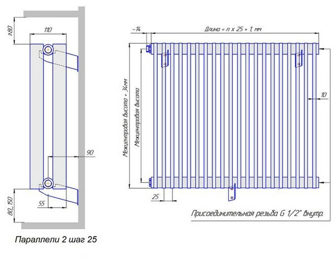 Стальной трубчатый радиатор Параллели В2-1750 шаг 25мм-8 интересное: