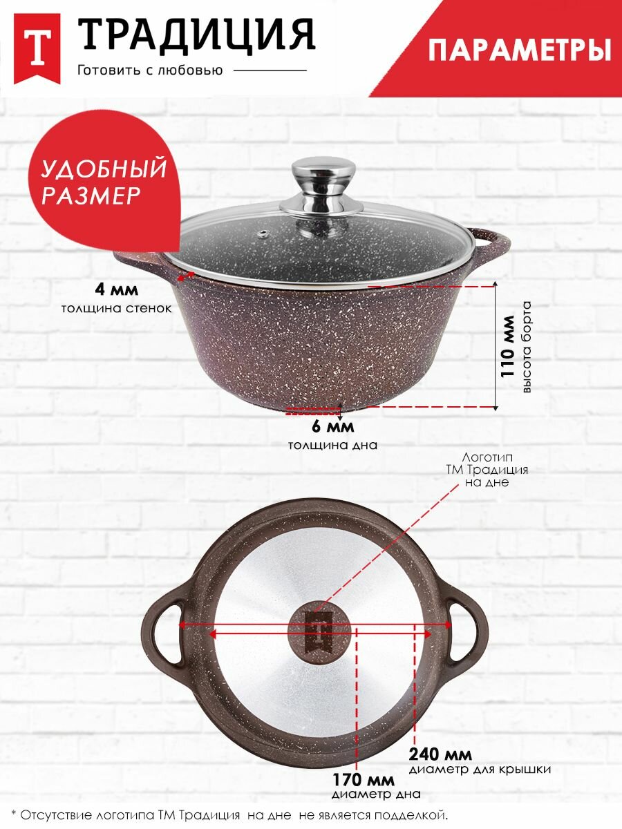 Кастрюля антипригарная литая 3,0л со стеклянной крышкой Доломит ТМ Традиция готовить с любовью интересное: