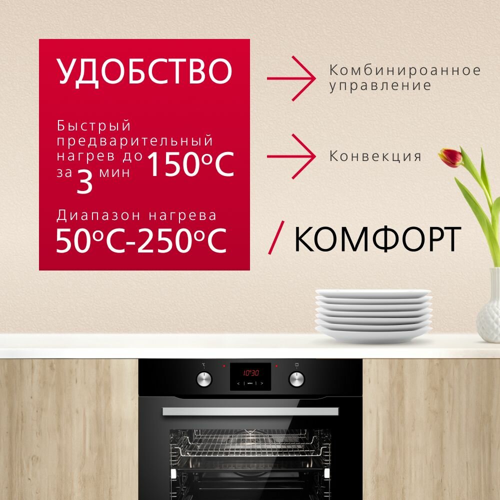 Электрический духовой шкаф Hansa BakingPro встраиваемый BOESS694001, 60см, объем камеры XXL, с грилем и улучшенной конвекцией, с быстрым нагревом, с таймером, тройное жаропрочное стекло