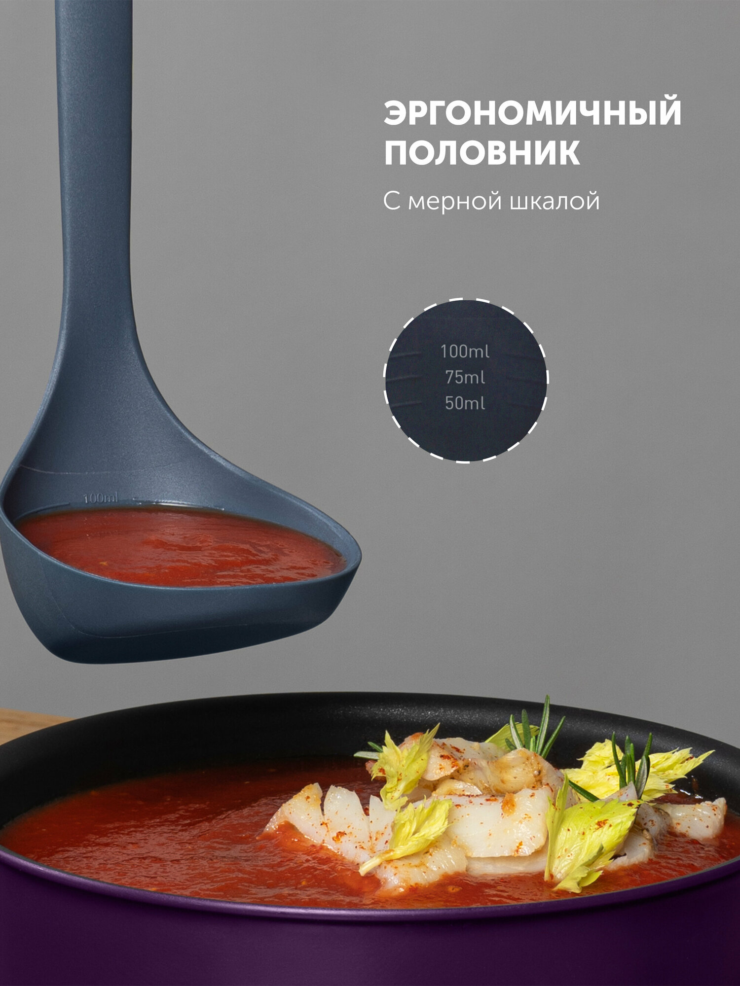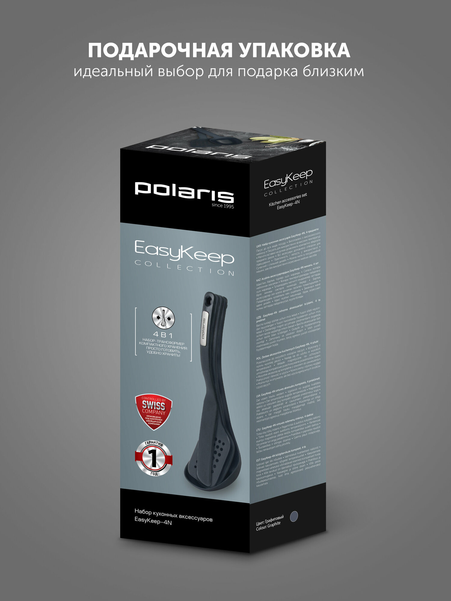 Набор кухонных аксессуаров Polaris "EasyKeep-4N" (лопатка для блинов, лопатка, ложка, половник) 4 предмета графит интересное: