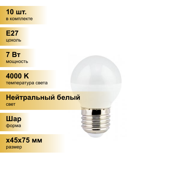 Светодиодная LED лампа Ecola шар G45 E27 7W 4000K 4K 75x45 Premium K7QV70ELC (упаковка 10 штук)