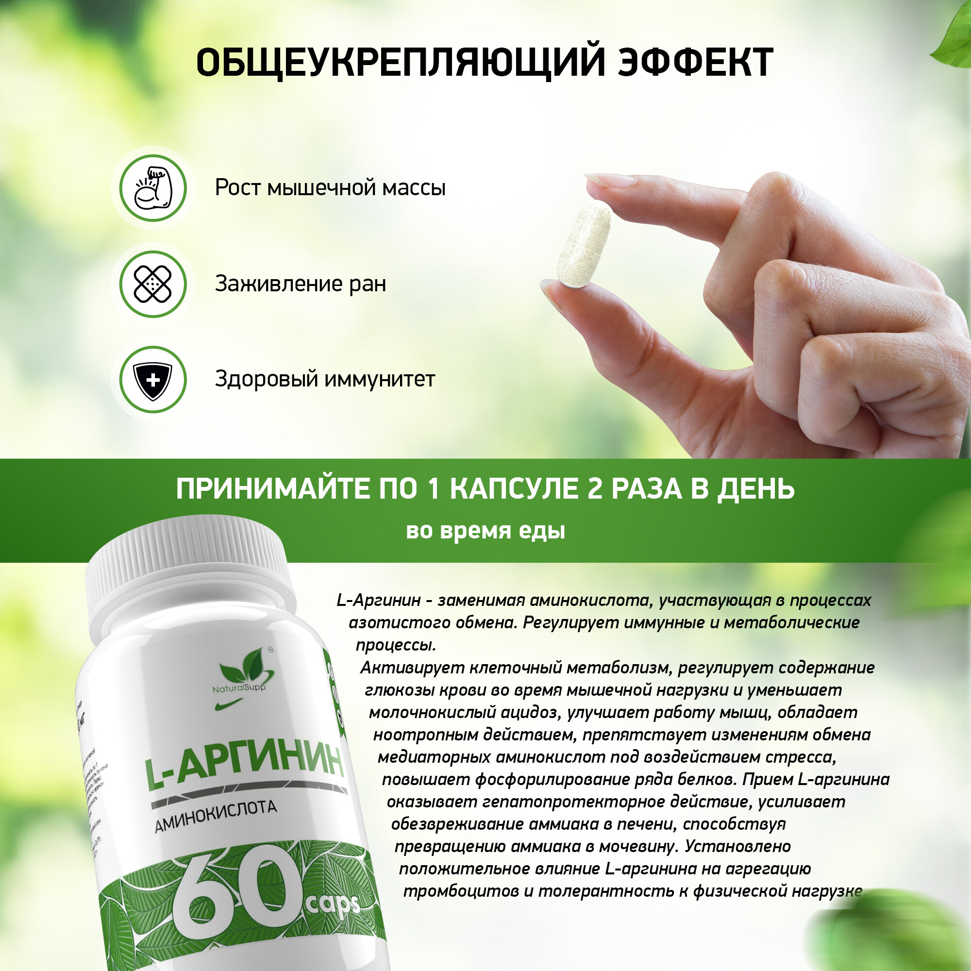 NATURALSUPP L-Arginine Л-Аргинин 550мг (60 капсул) (БАД) интересное: