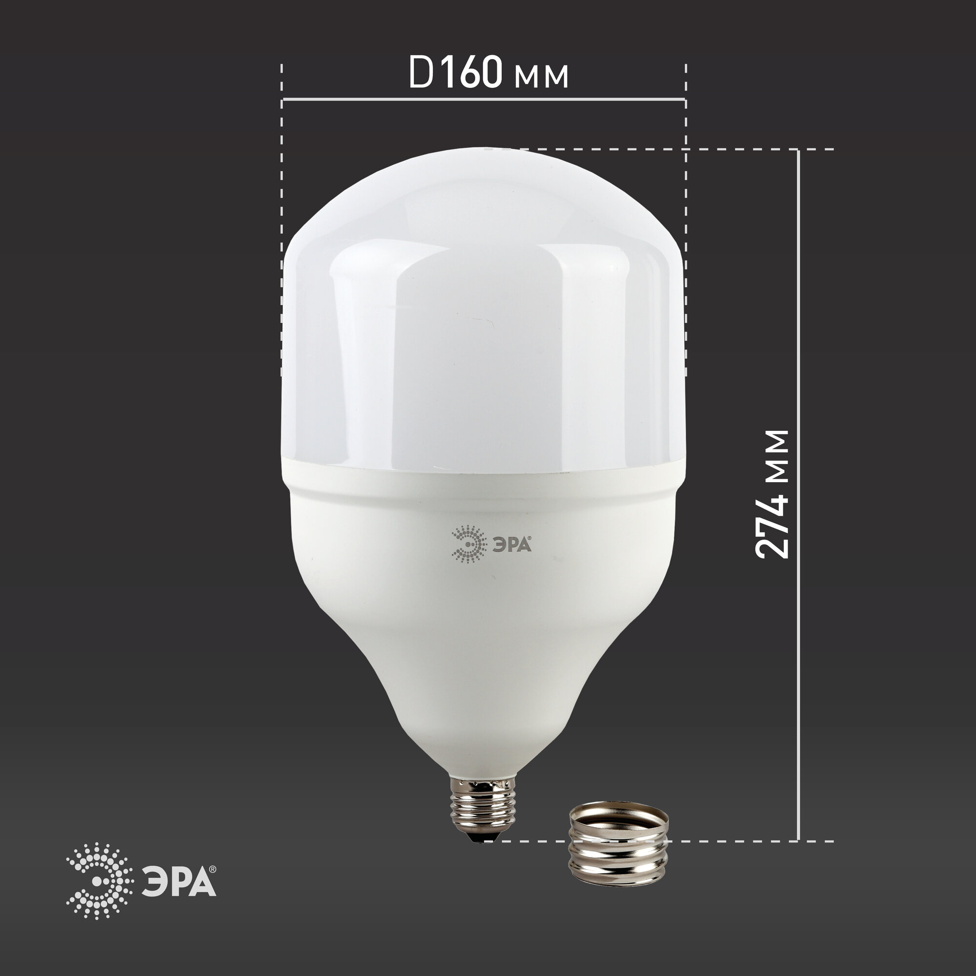 Лампа светодиодная высокомощная STD LED POWER T160-65W-6500-E27/E40 65Вт T160 колокол 6500К холод. бел. E27/E40 (переходник в компл.) 5200лм Эра Б0027924
