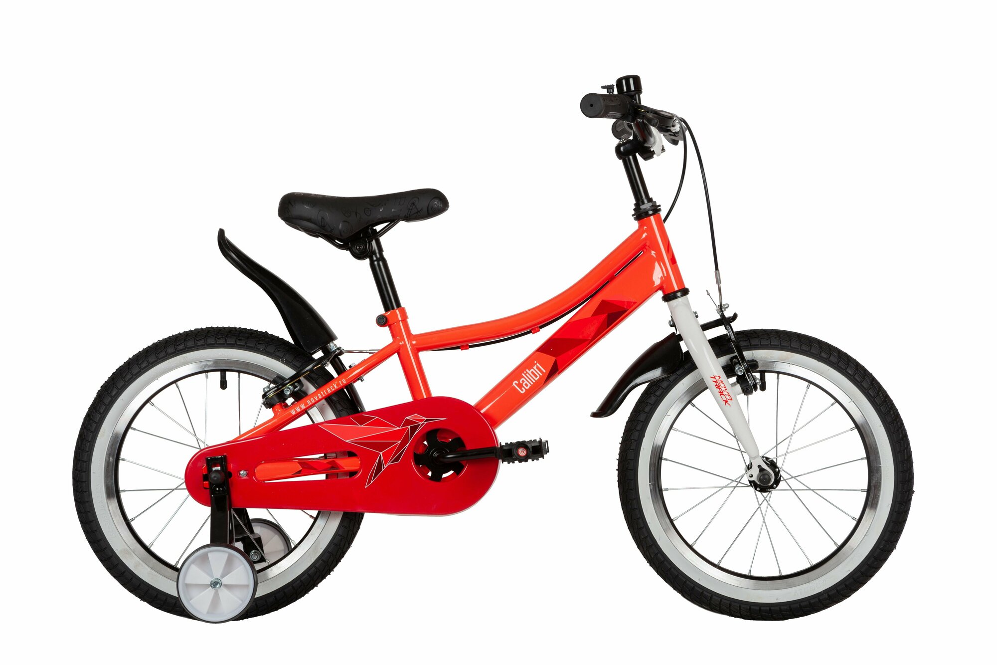 Велосипед NOVATRACK 16" CALIBRI сталь, коралловый, тормоз V-brake, полная защита цепи, короткие крылья