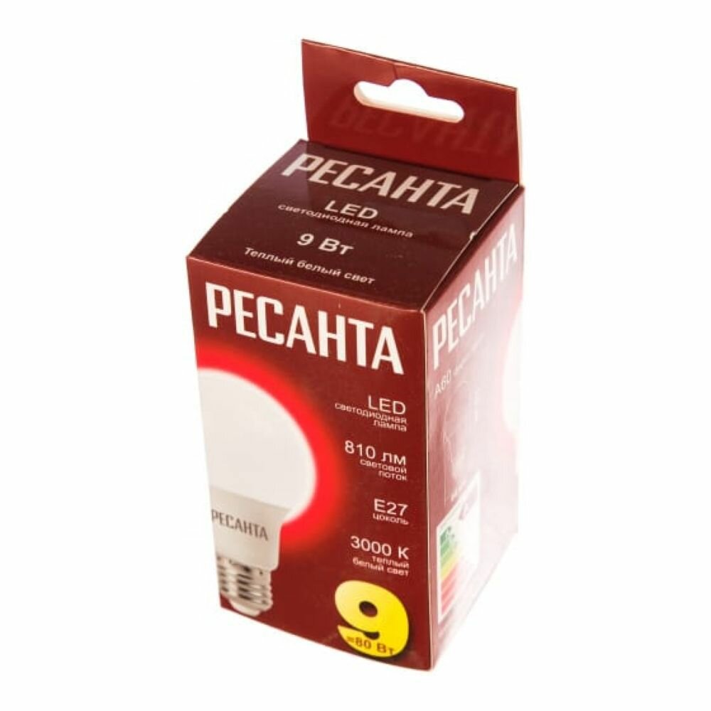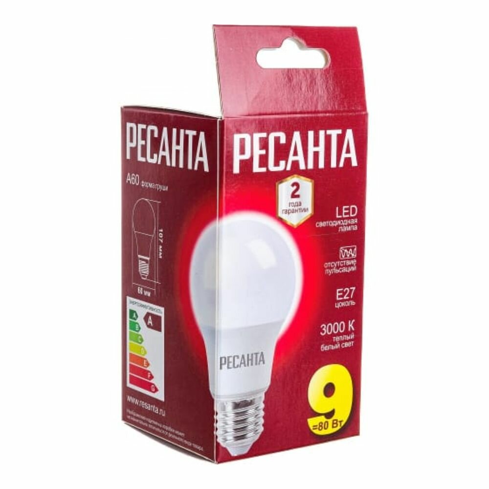Светодиодная лампа Ресанта LL-R-A60-9W-230-3K-E27, груша, 9 Вт, Е27, теплый