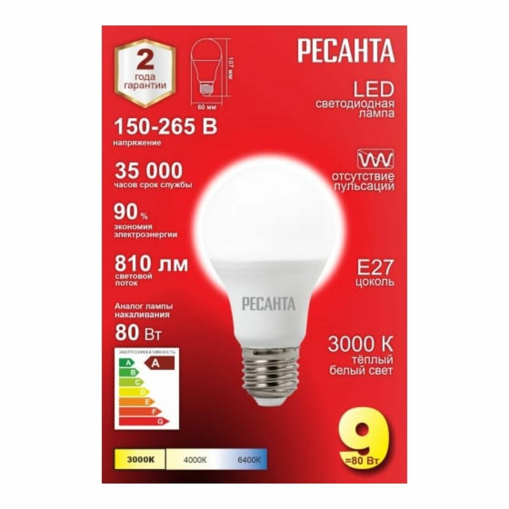 Лампа светодиодная 9 Вт теплый белый свет LL-R-A60-9W-230-3K-E27 Ресанта 76/1/13 интересное: