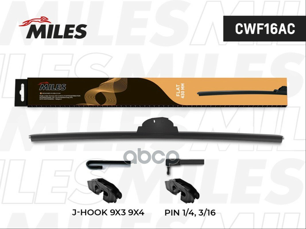 Купить MILES CWF17AC Щетка стеклоочистителя 430мм бескаркасная (HOOK 9x3/9x4, PIN 1/4, 3/16) CWF17AC