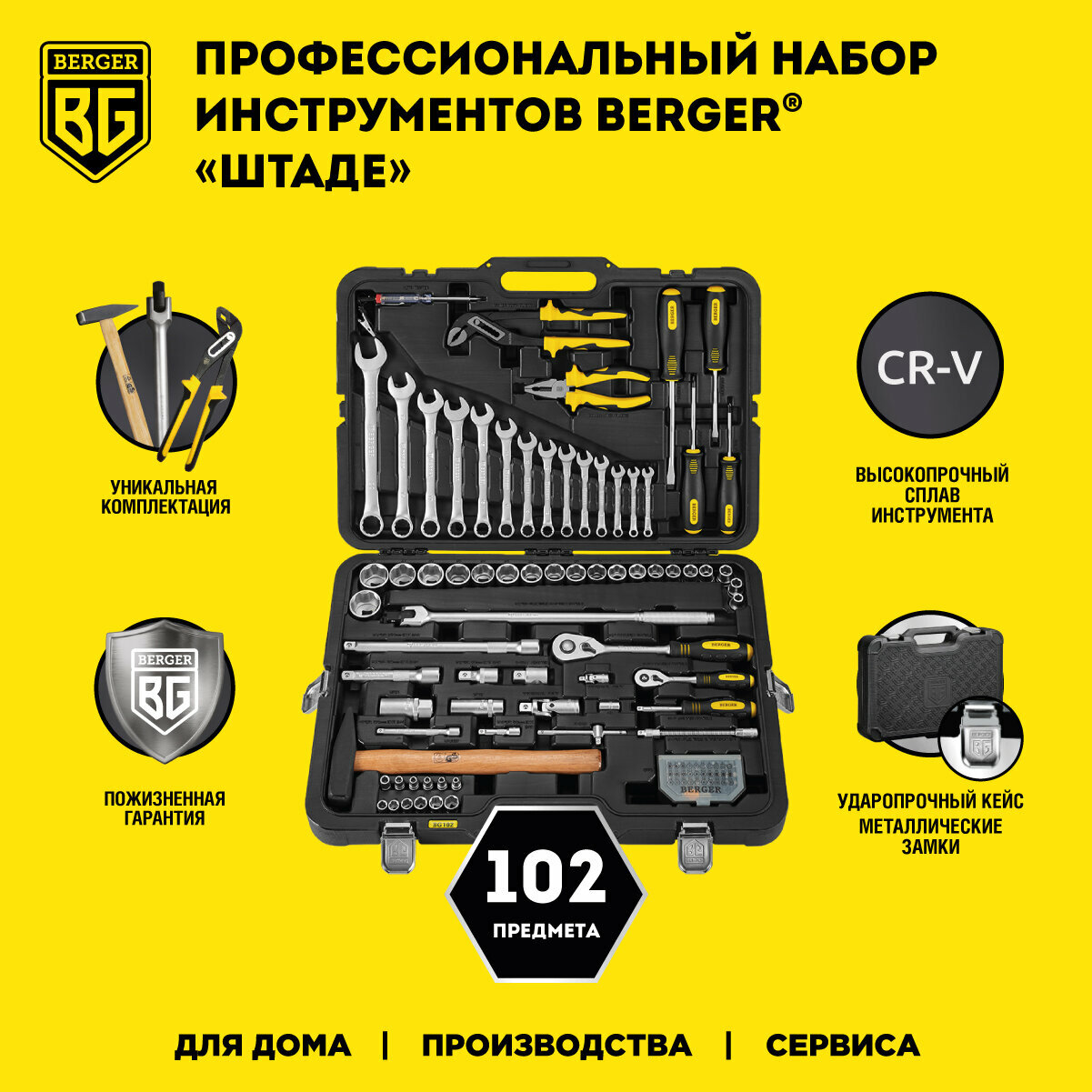 Универсальный набор инструментов BERGER 102 предмета 1/2 - 1/4 «штаде» BG102-1214
