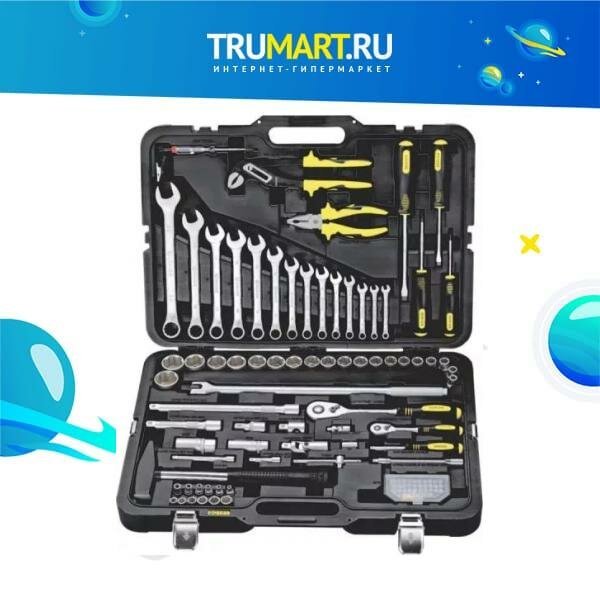 | Дополнительная информация | в комплекте: 1/4": трещотка (ключ трещоточный с быстрым сбросом) 45 зубов: 150 мм, вороток Т-образный: 110 мм, кардан шарнирный, удлинитель: 50, 100 мм, удлинитель гибкий: 150 мм, отвертка с присоединительным квадратом: 150 мм, адаптер для бит, держатель для бит магнитный для шуруповерта; 1/2": трещотка (ключ трещоточный с быстрым сбросом) 45 зубов: 260 мм, вороток шарнирный: 430 мм, кардан шарнирный, переходник скользящий для удлинителей, удлинитель: 50, 125, 250 мм; автотестер 6-12-24 V; тип стали инструмента: CR-V (хром-ванадий); материал ручек инструмента: резинопластик; тип стали бит: S2 |