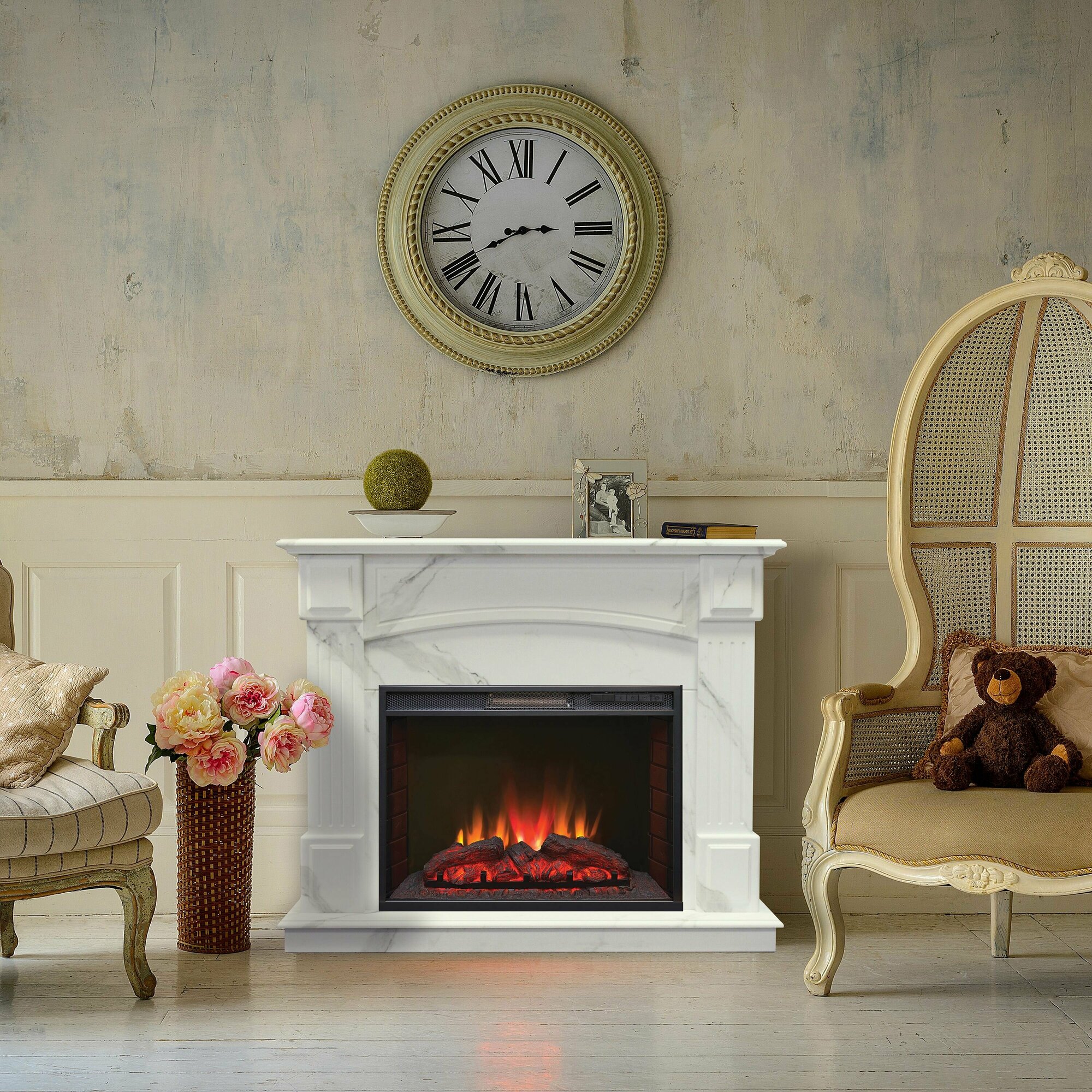 Электрокамин RealFlame Carolina Marble WT (под мрамор) c очагом Evrika 25.5 (электрический камин c панорамным экраном)