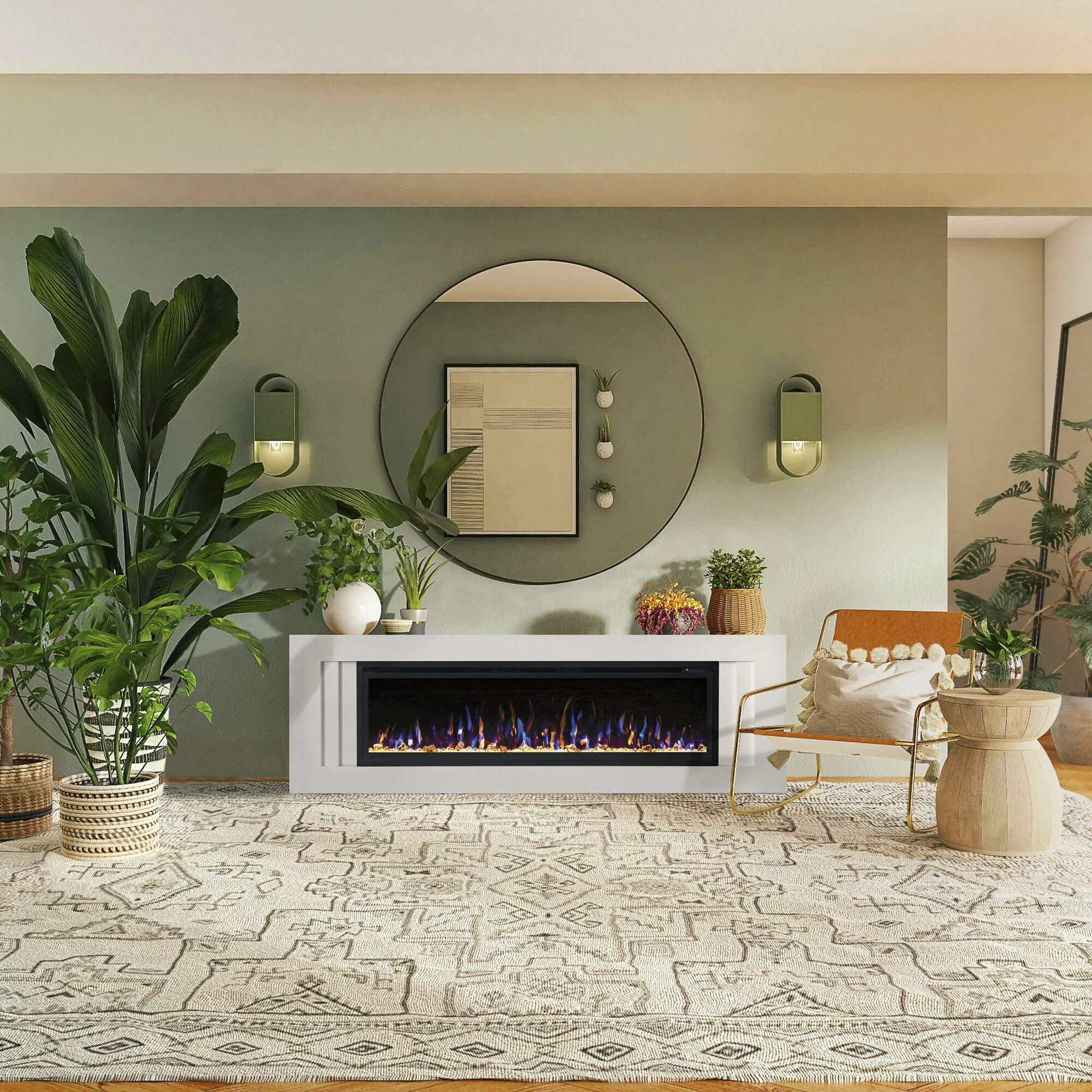 Электрокамин Modern белый, стильный камин с имитацией пламени, пульт ДУ, звуковой эффект