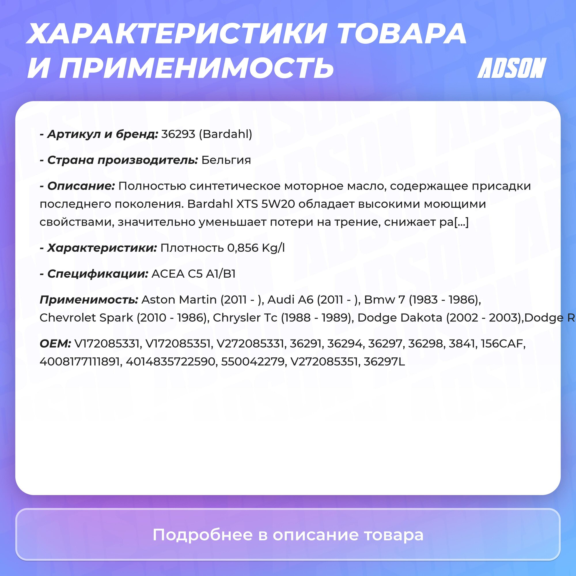 СохранитьМасло моторное синтетическое 5w20 xts sn 5л Bardahl 36293 интересное: