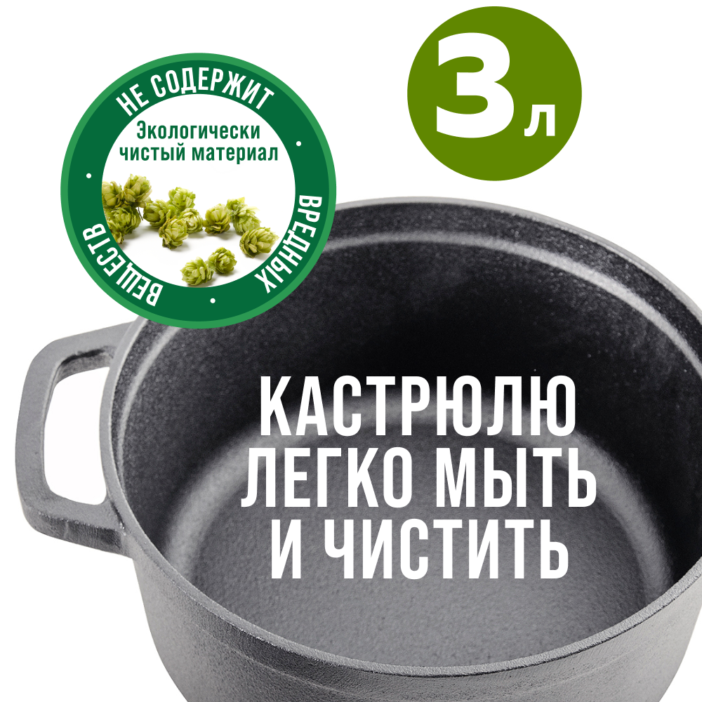 Кастрюля с крышкой чугунная, 2,9 л, чугунок