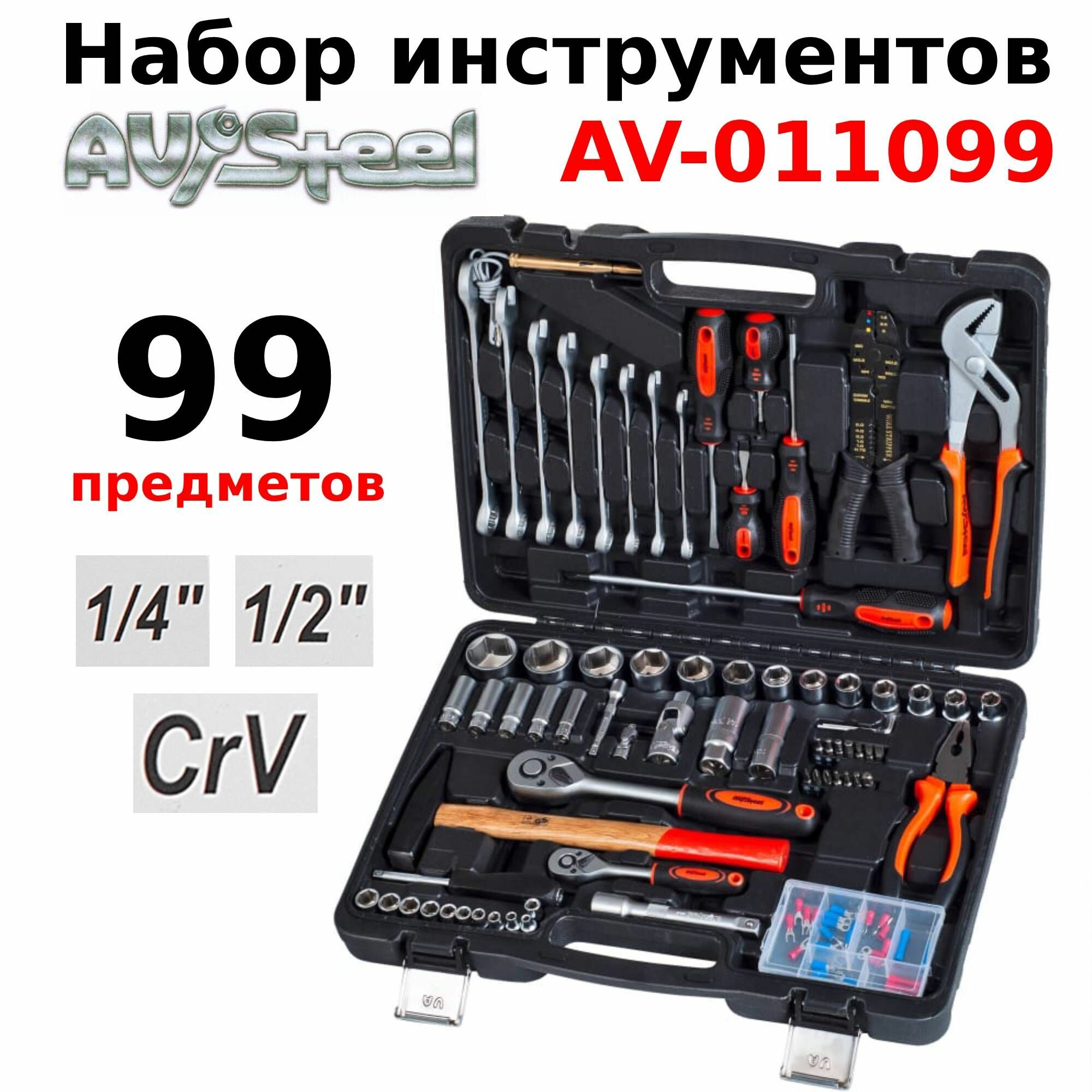 Купить Набор инструмента 99 предметов 1/4" 1/2" профессиональный "AV Steel" AUTOVIRAZH (AV-011099)