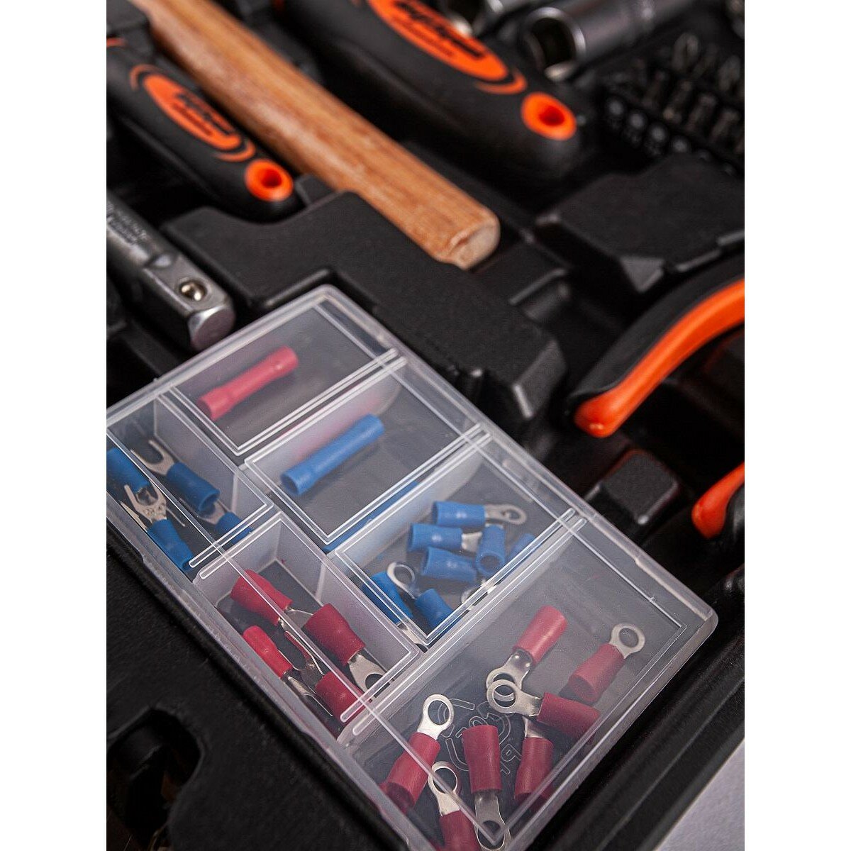 | Дополнительная информация | клеммы 26 шт; адаптер-переходник F 1/4" SQ - 1/4" HEX 25 мм адаптер-переходник M 1/4" HEX - 1/4" SQ 25 мм; карданный шарнир 1/2" 70 мм, 1/4" 35 мм |