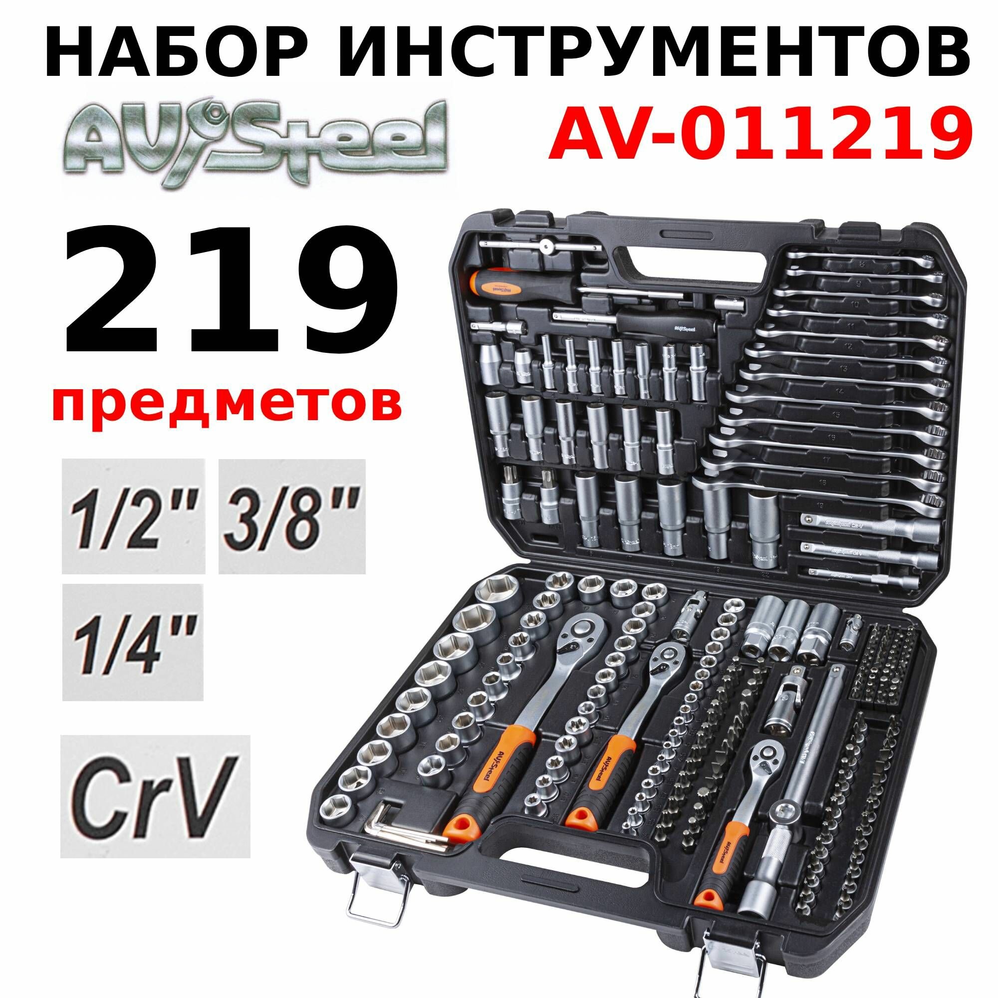 Набор инструмента "AV Steel" 219 предметов 1/4",3/8",1/2" профессиональный