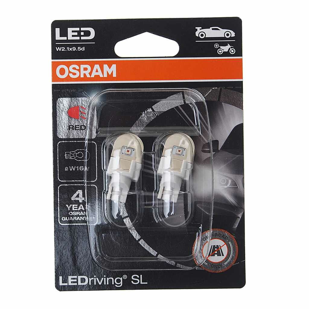 OSRAM 921DRP-02B Комплект светодиодных ламп блистер 2шт 12V W16W Red 1,4W W2.1x9.5d LEDriving SL (3 поколение) красный свет