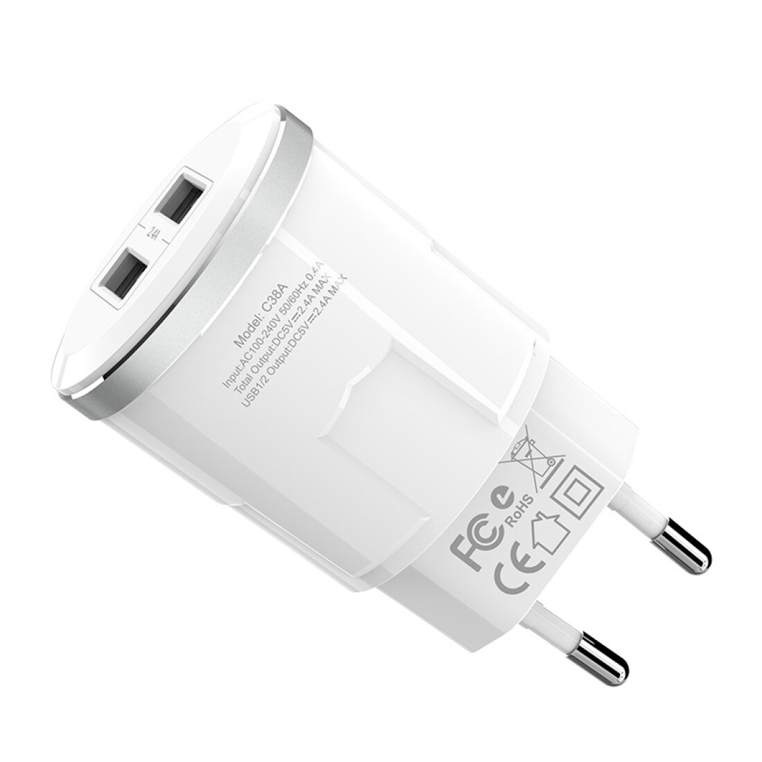 Купить Сетевое зарядное устройство, 2 USB 2.4A (C38A), HOCO, белый