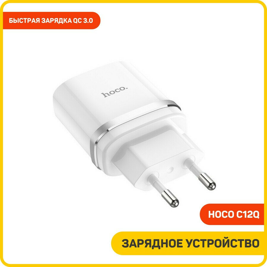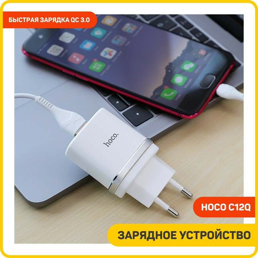 Сетевое зарядное устройство (СЗУ) Hoco C12Q QC 3.0 (USB) + кабель MicroUSB, 3 A, белый