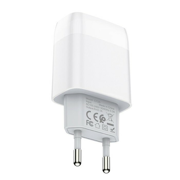 Сетевое зарядное устройство Hoco C72A, 1 USB, 2.1 А, белый