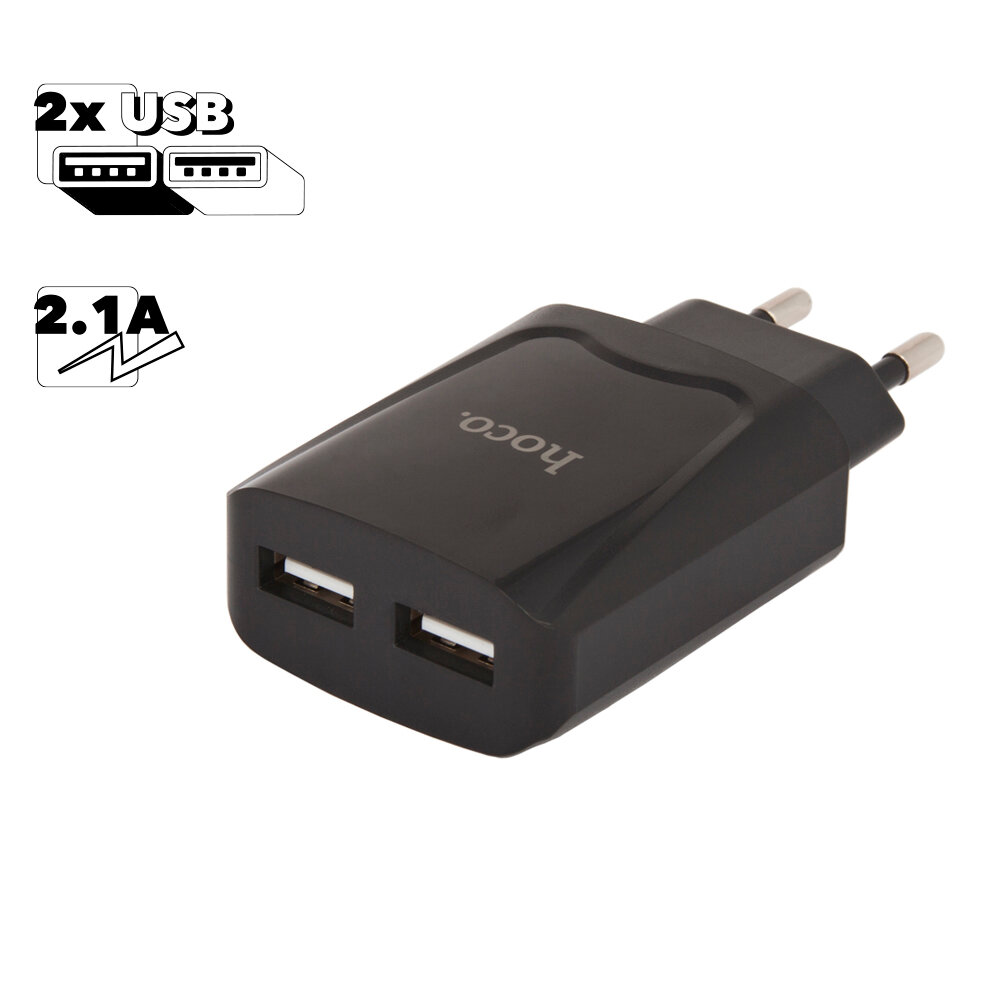 Купить Сетевое зарядное устройство черного цвета на 2USB HOCO C52A, 2,1A