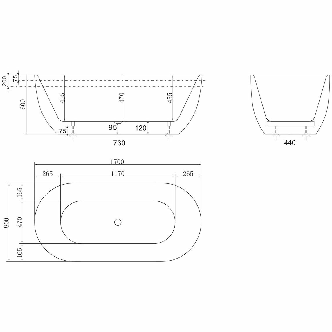 Ванна отдельностоящая BelBagno BB70-1700-800, акрил