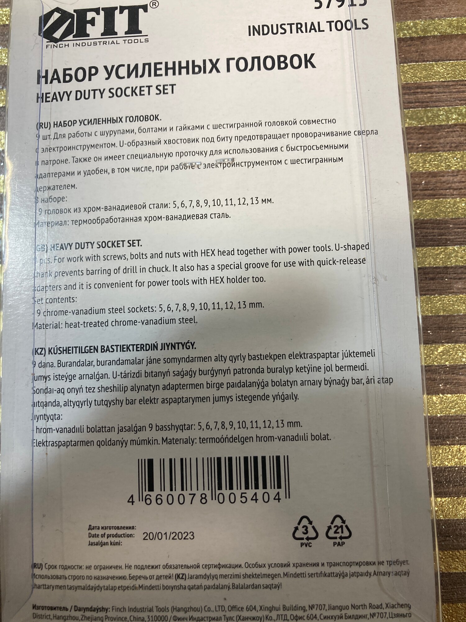 Набор усиленных головок CrV 9 шт (5-13 мм) 57915 FIT