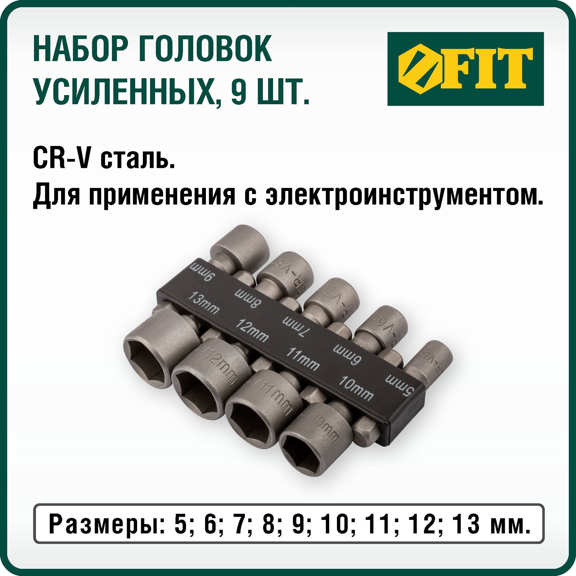 Набор усиленных головок CrV 9 шт (5-13 мм) | код 57915 | FIT (2шт.в упак.)