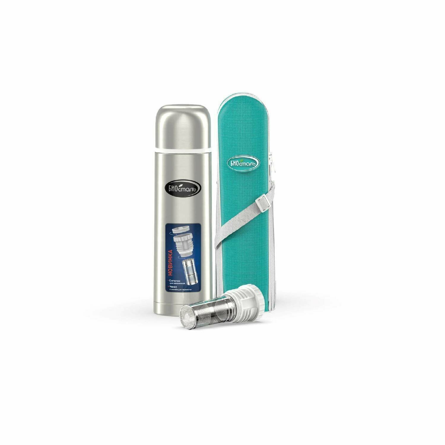 Термос Biostal (0,75 литра), с ситечком и чехлом, стальной