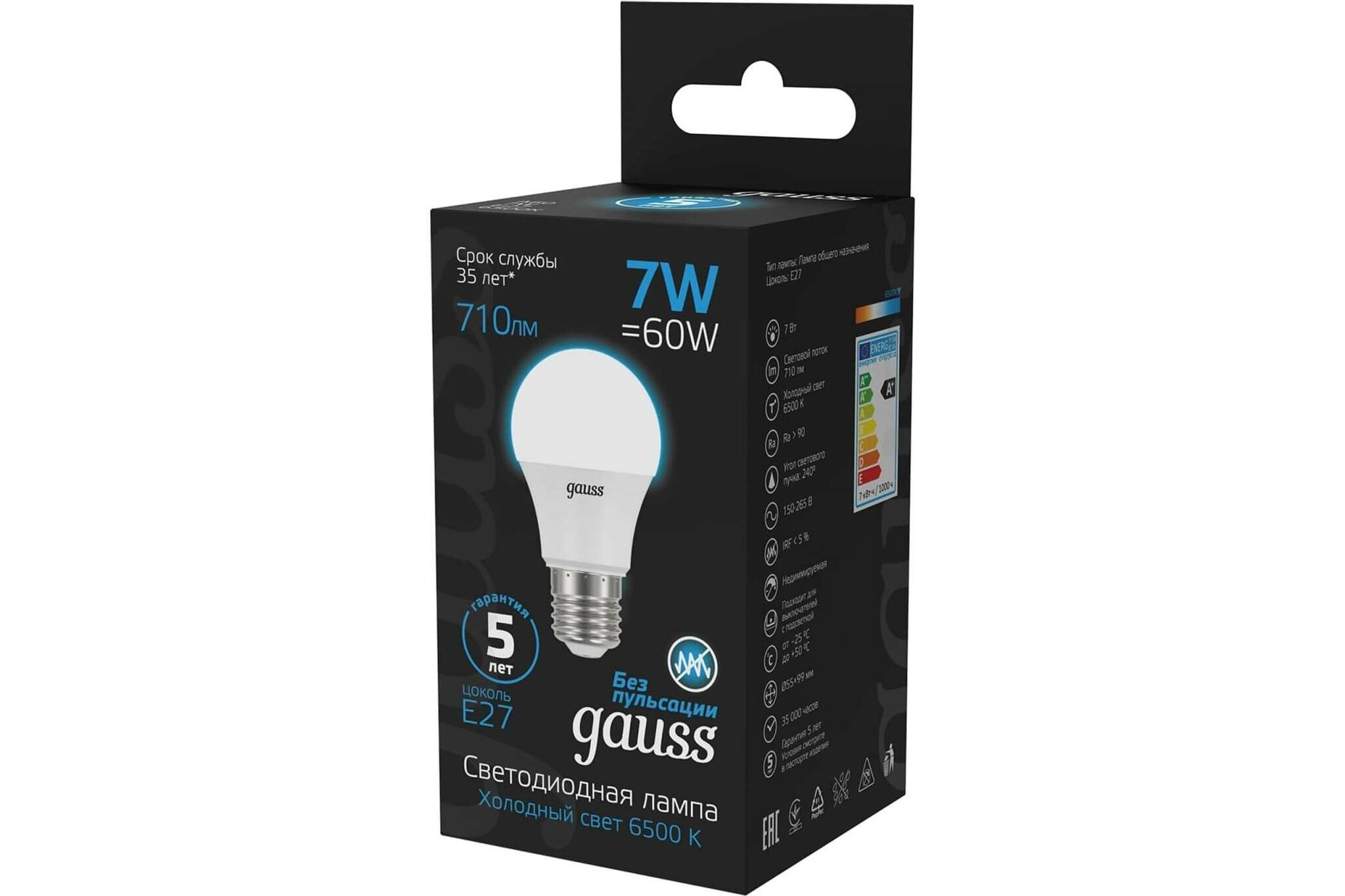 Лампа светодиод 7Вт груша А60 Е27 6500К 710Лм матовая Gauss Black (1/10/50) интересное: