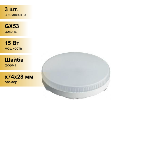 (3 шт.) Светодиодная лампочка онлайт GX53 св/д 15W(1100lm) 2700K 2K 28x74 матовая OLL-GX53-15-230-2K 61904 . Цоколь GX53