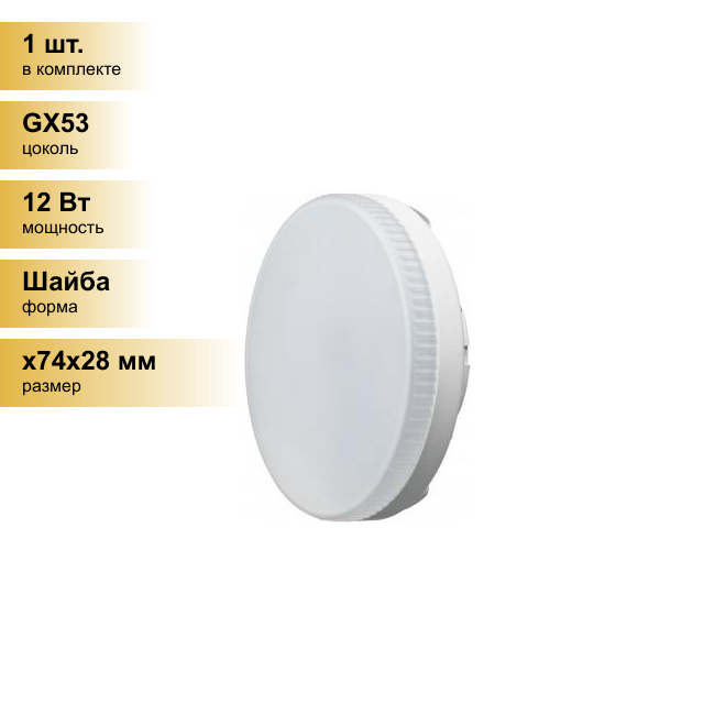 1шт. - Лампа светодиодная LED 12вт GX53 теплый таблетка / онлайт; арт. 61190 OLL-GX53; оригинал / - комплект 1шт
