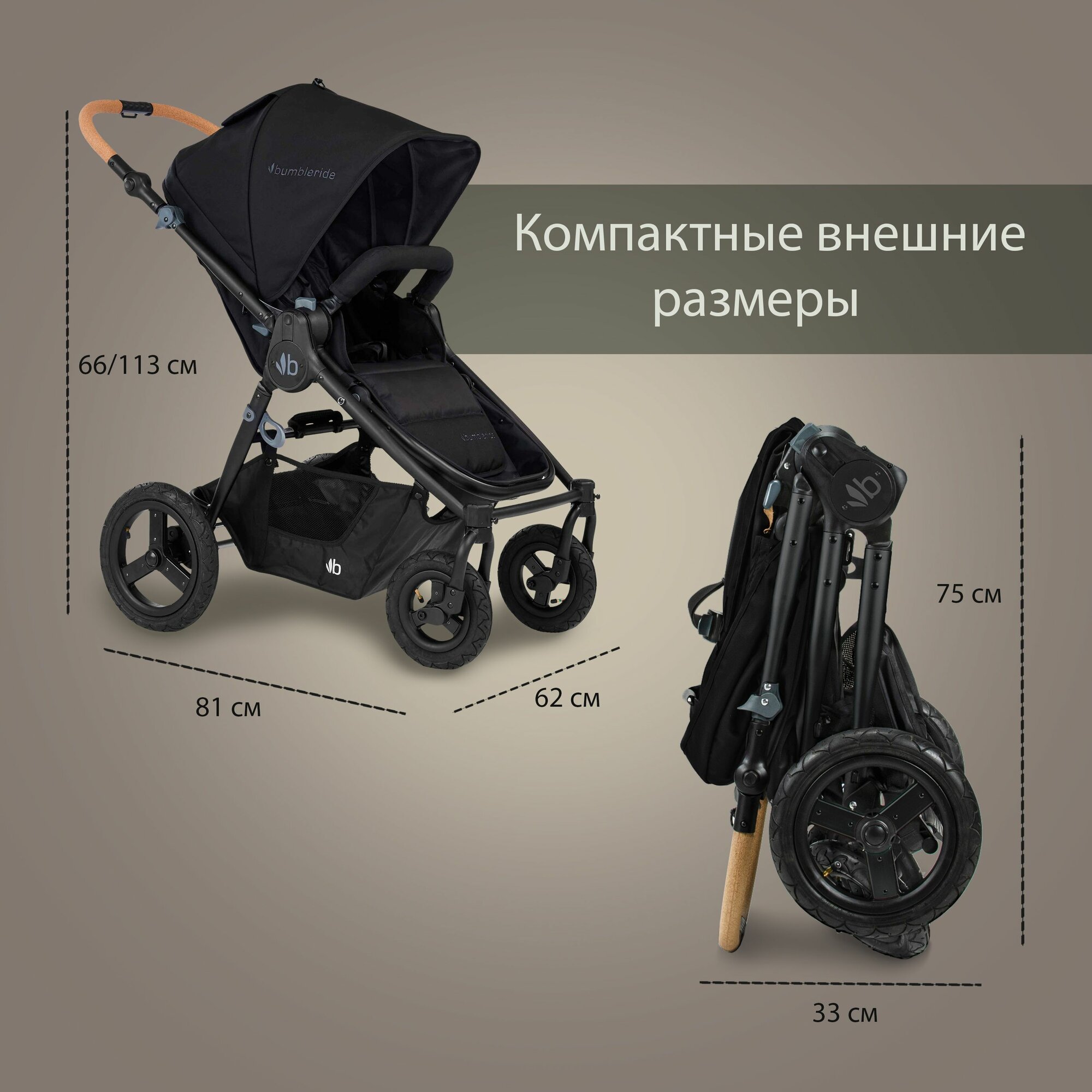 Коляска 2в1 - Bumbleride Era, цвет Sand / Black (Бежевый / Чёрный)