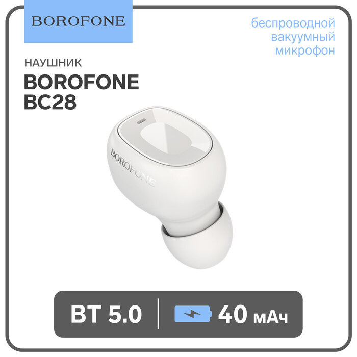 Моно наушник беспроводной (BT ver. 5.0) BOROFONE BC28 вакуумный с микрофоном, 40mAh, белый (50/200)