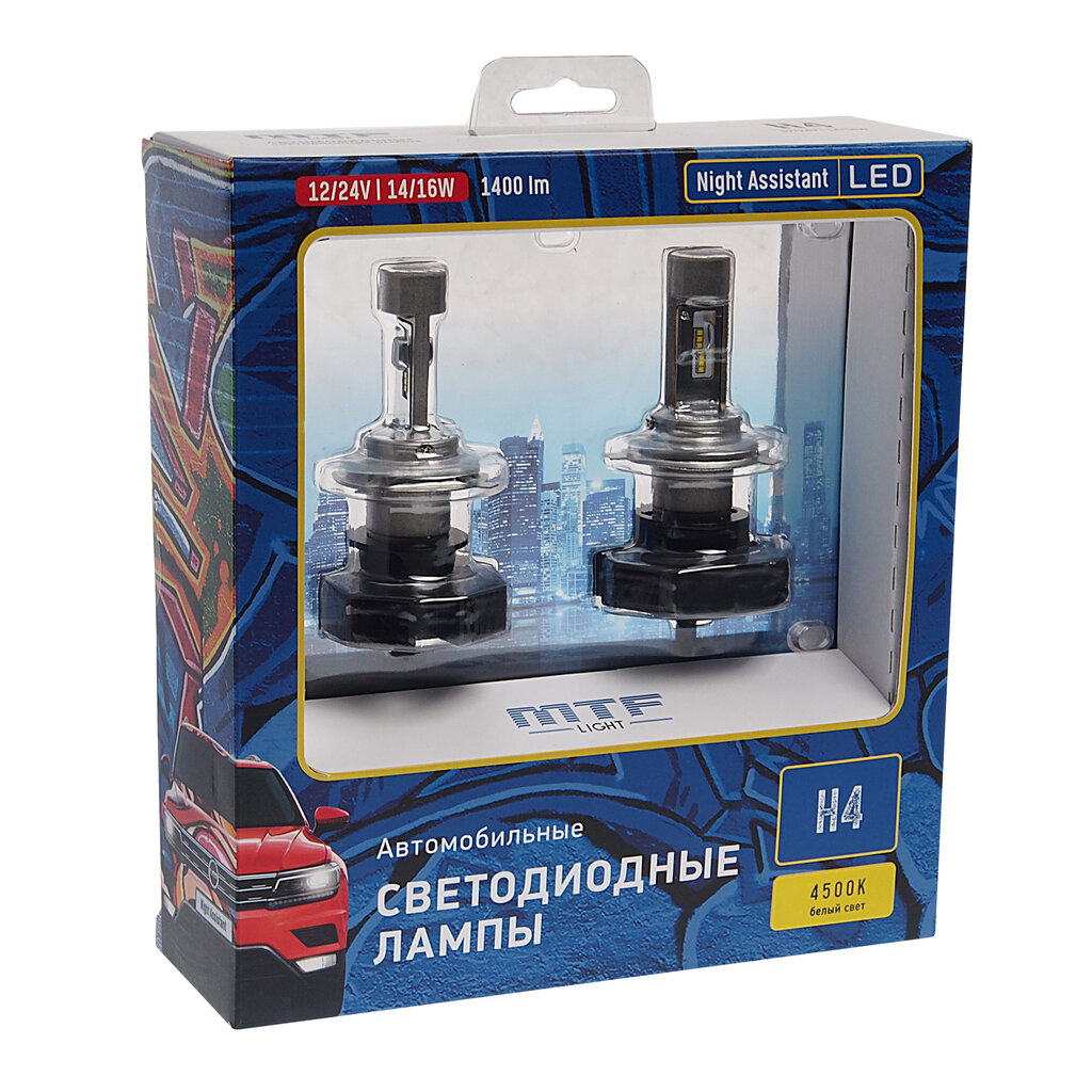 Светодиодные лампы MTF light Night Assistant LED H4 4500K ( 2 лампы)
