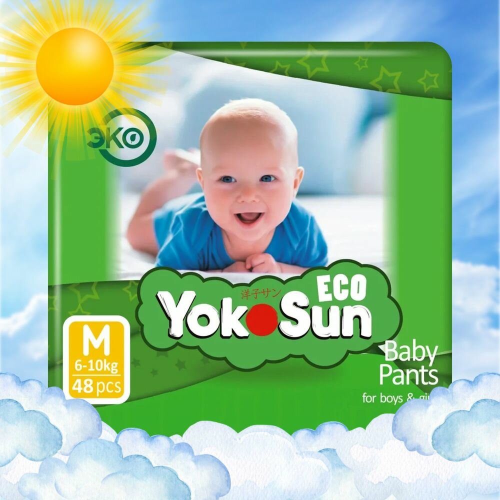 Детские подгузники-трусики YokoSun Eco размер М (6-10 кг), 48 шт.