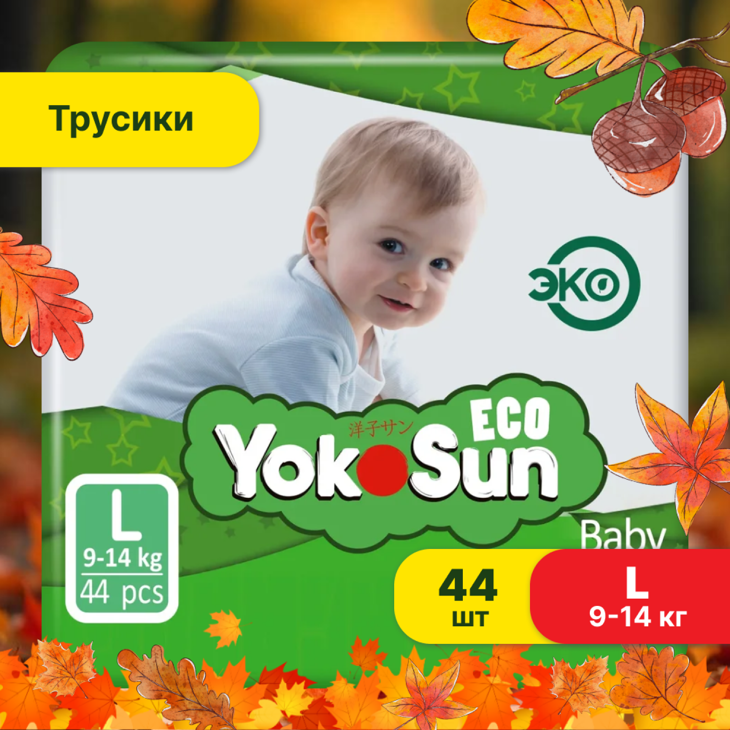 Подгузники-трусики YokoSun Eco, размер L 9-14 кг, 44 шт