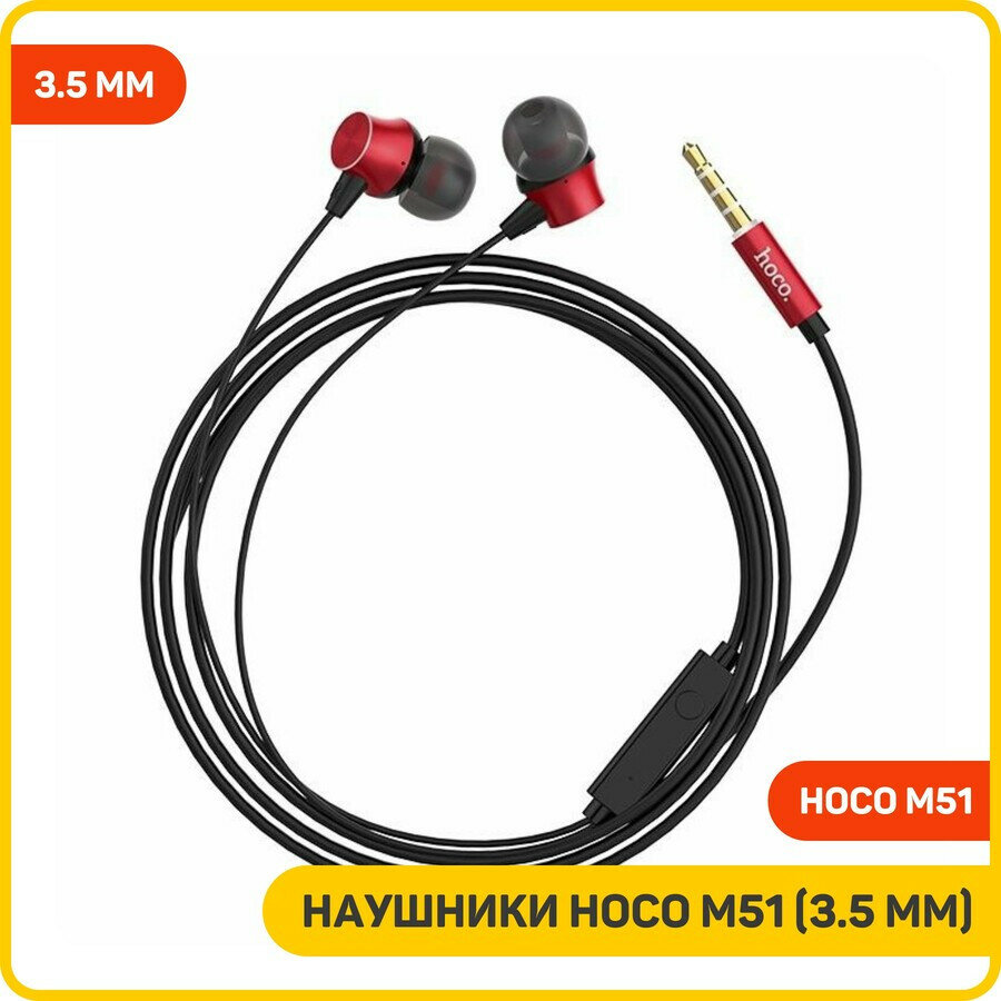 Проводные наушники вкладыши HOCO M51 Proper, AUX Jack 3.5mm, для телефона/компьютера, 1.2 м, красный