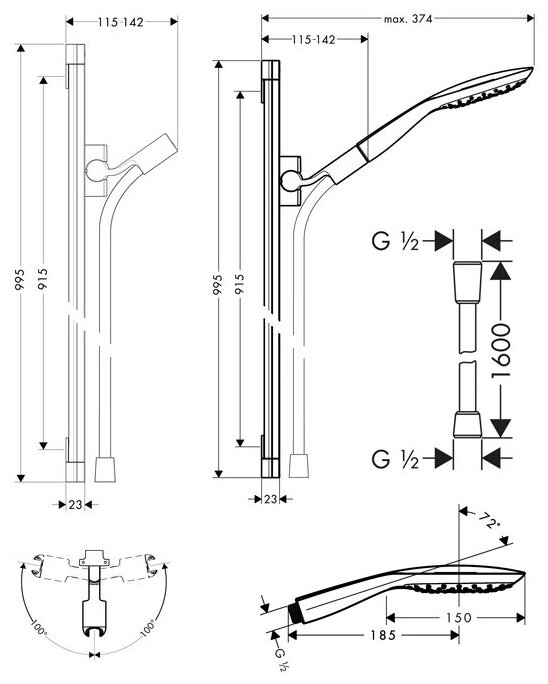 | Дополнительная информация | высота стойки для душа: 995 мм; диаметр душевой лейки: 150 мм |