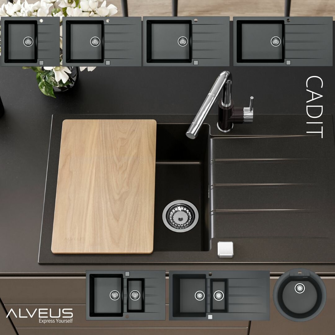 Мойка ALVEUS GRANITAL CADIT 40 CARBON - G91 860 X 500 1X в комплекте с сифоном 1132823, Alveus черный